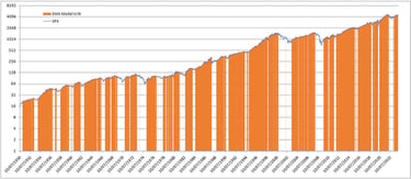 A levered strategy using same input (the only closing prices of S&P500) would act like this: